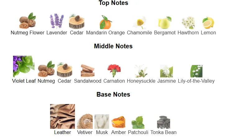 Fahrenheit by Dior is a Aromatic Fougere fragrance for men. Fahrenheit was launched in 1988. Fahrenheit was created by Jean-Louis Sieuzac, Michel Almairac and Maurice Roger. Top notes are Nutmeg Flower, Lavender, Cedar, Mandarin Orange, Chamomile, Bergamot, Hawthorn and Lemon; middle notes are Violet Leaf, Nutmeg, Cedar, Sandalwood, Carnation, Honeysuckle, Jasmine and Lily-of-the-Valley; base notes are Leather, Vetiver, Musk, Amber, Patchouli and Tonka Bean.