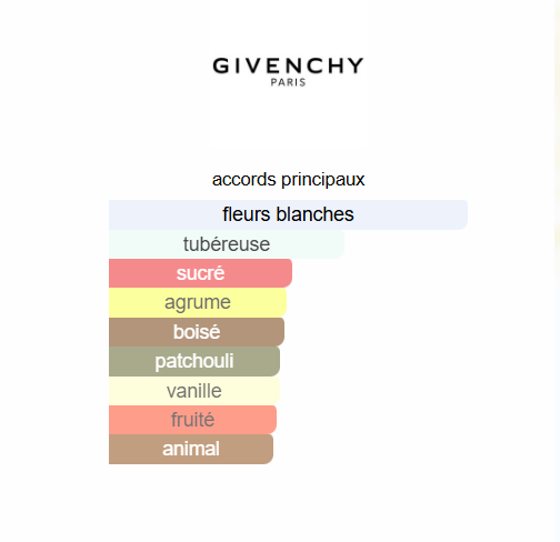 L'Interdit Eau de Parfum de Givenchy est un parfum Orientale Floral pour femme. L'Interdit Eau de Parfum a été lancé en 2018. L'Interdit Eau de Parfum a été créé par Dominique Ropion, Anne Flipo et Fanny Bal. Les notes de tête sont Poire et Bergamote; les notes de coeur sont Tubéreuse, Fleur d'oranger et Jasmin Sambac; les notes de fond sont Patchouli, Vanille, Ambroxan et Vétiver.