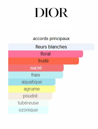 J'adore de Dior est un parfum Floral fruité pour femme. J'adore a été lancé en 1999. Le nez derrière ce parfum est Calice Becker. Les notes de tête sont Poire, Melon, Magnolia, Pêche, Mandarine et Bergamote; les notes de coeur sont Jasmin, Muguet, Tubéreuse, Freesia, Rose, Orchidée, Violette et Prune; les notes de fond sont Musc, Vanille, Cèdre et Mûre. Ce parfum est le gagnant du prix FiFi Award Best National Advertising Campaign / TV 2007