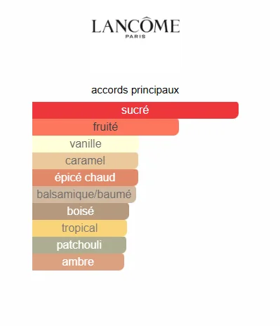 La Nuit Trésor de Lancôme est un parfum Orientale Vanillé pour femme. La Nuit Trésor a été lancé en 2015. La Nuit Trésor a été créé par Christophe Raynaud et Amandine Clerc-Marie. Les notes de tête sont Poire, Tangerine et Bergamote; les notes de coeur sont Fraise, Orchidée vanilla, Rose noire et Fruit de la passion; les notes de fond sont Praliné, Caramel, Vanille, Litchi, Patchouli, Encens, Café, Réglisse, Coumarine et Papyrus